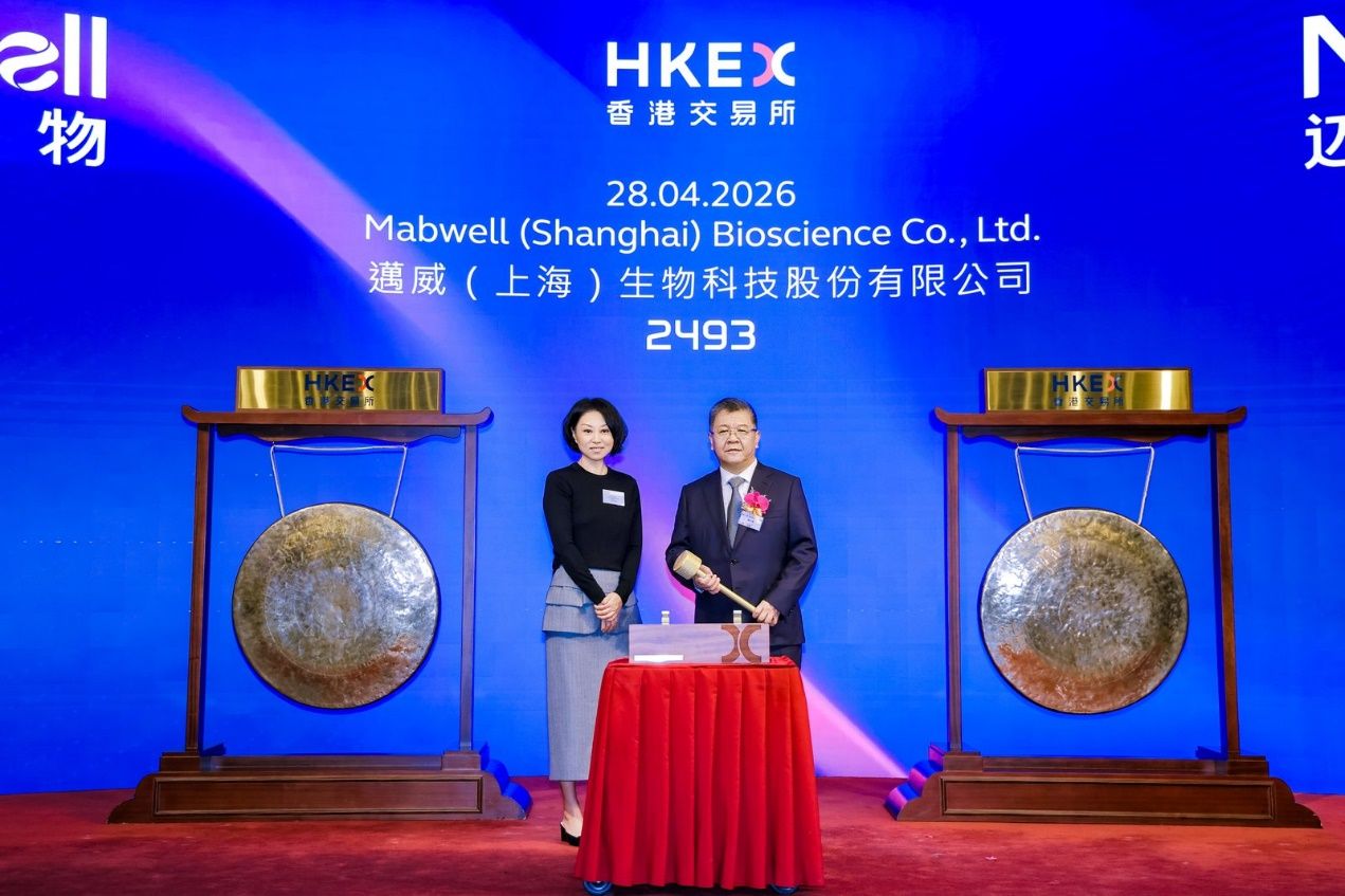 香港, 2026年4月28日 - (亚太商讯) - 4月28日,迈威(上海)生物科技股份有限公司(02493.HK,简称“迈威生物”)成功在香港联合交易所主板挂牌上市,成为又一家“A+H”两地上市的生物科技公司,亦是首家AtoH的18A公司。